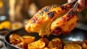 Pollo al limone al forno: succoso e dorato, con patate croccanti