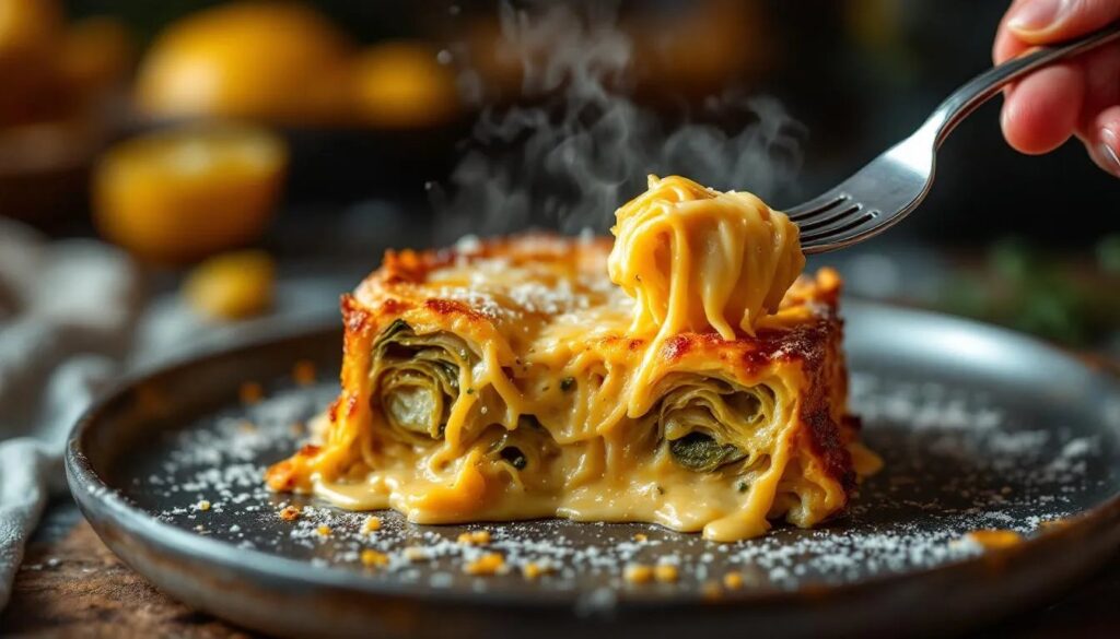Questa versione mantiene tutti gli elementi della ricetta originale — gli strati sovrapposti, il formaggio filante, il sugo che lega ogni componente — ma alleggerisce il processo di cottura e riduce l'apporto di grassi senza sacrificare la complessità gustativa. I carciofi vengono preparati, tagliati a fettine sottili e passati in forno su una teglia ben calda prima di essere assemblati: un passaggio che trasforma una verdura tendenzialmente amara in qualcosa di morbido all'interno e leggermente abbrustolito in superficie. Si allacci il grembiule.